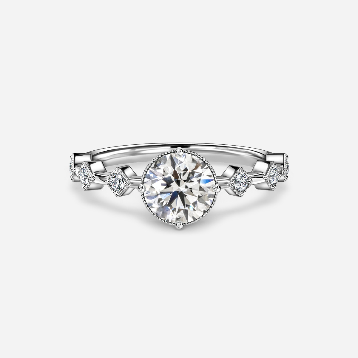 The Agra Unique Vintage Grain Set White Gold Engagement Ring exudes timeless elegance with its exquisite design, featuring a brilliant round diamond set on a delicately crafted white gold band. This heirloom-quality piece seamlessly blends vintage charm with modern sophistication, symbolizing enduring love and commitment. Handcrafted in Hatton Garden, London Centre Diamond Not Included Setting Only