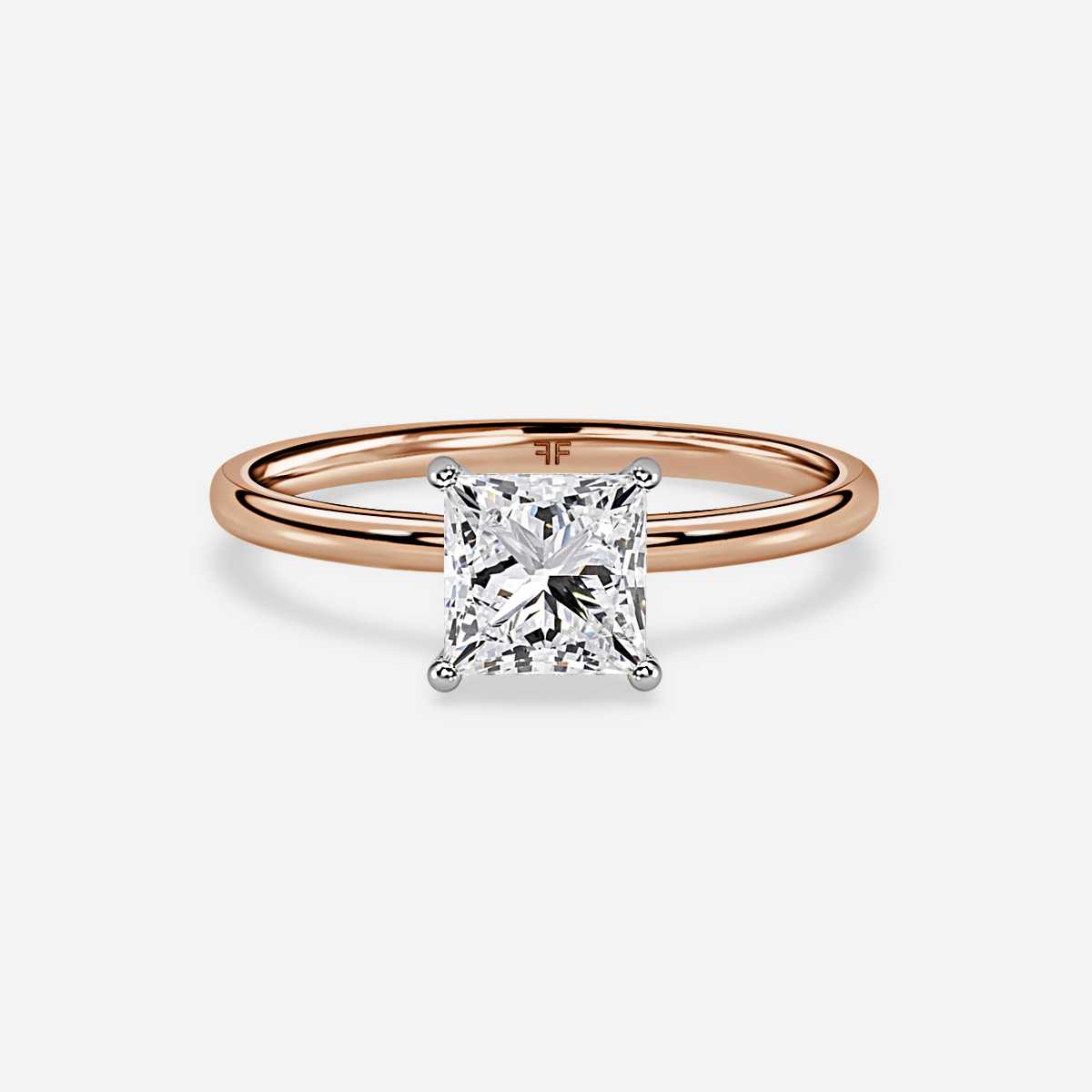 This elegant kate two tone hidden halo rose gold engagement ring features a glittering hidden halo of diamonds that wraps around the center gem while a plain band complements the gallery for a chic look. Handcrafted in Hatton Gardens, London. Centre Diamond Not Included Setting only