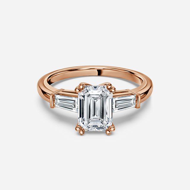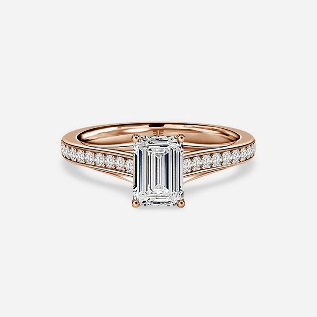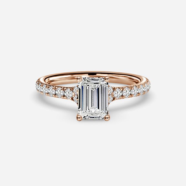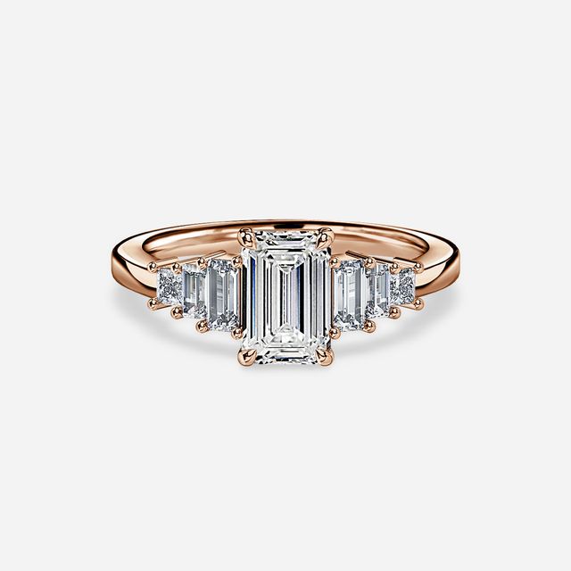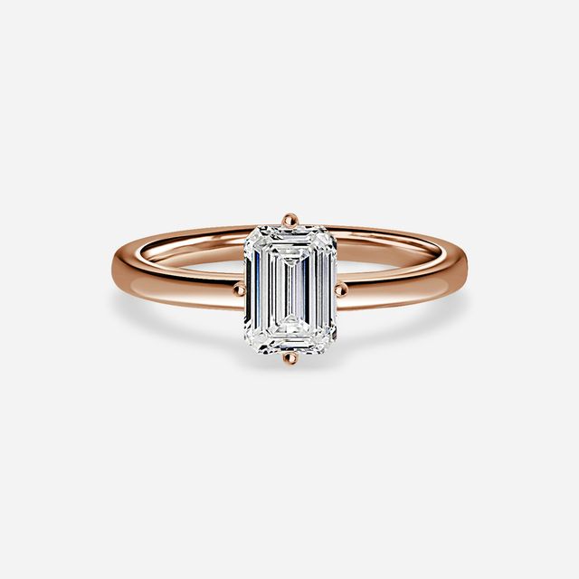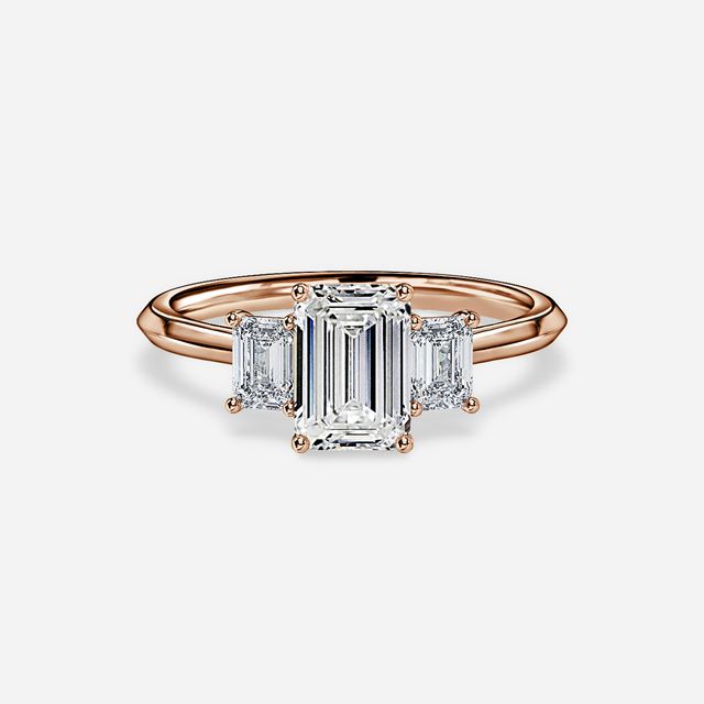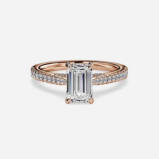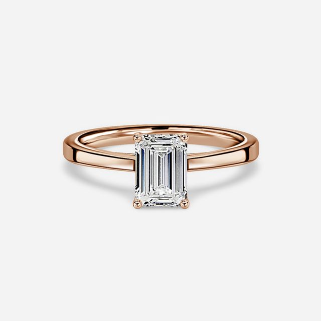 Rose gold emerald engagement rings are a stunning combination of a classic cut and a trendy metal. The warm tones of the rose gold perfectly complement the sleek and elegant lines of the emerald cut diamonds.