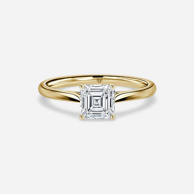 Explore our exquisite collection of yellow gold asscher cut engagement rings available at our store in Hatton Garden London and online store at flawlessfinejewelry. Find the ring that will make her say yes!